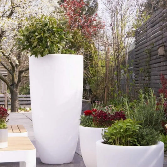 La forme cylindrique est idéale pour les plantes hautes. Elle offre une silhouette élégante, parfaite pour structurer un intérieur ou une terrasse moderne.