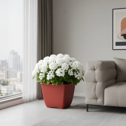 Ce matériau traditionnel apporte une esthétique naturelle et authentique. La terre cuite régule l’humidité, ce qui en fait une option idéale pour les plantes méditerranéennes, les cactus ou les herbes aromatiques.