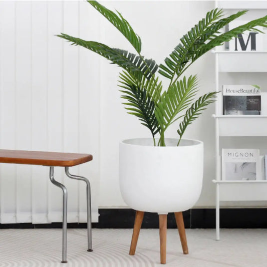 Les pots sur pied design en matériaux résistants sont parfaits pour accueillir des plantes artificielles ou des fleurs décoratives.