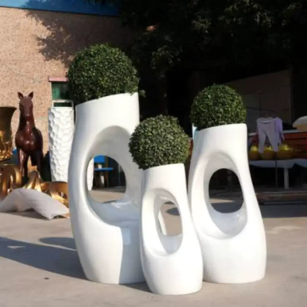 • Grand pot de fleur extérieur original avec élégance sculpturale en triptyque.