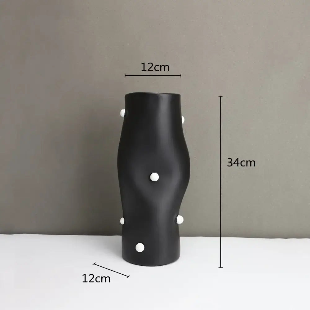• Grand vase de fleurs au style audacieux et graphique, en noir et blanc et aux formes irrégulières, qui transforme chaque bouquet en œuvre contemporaine.