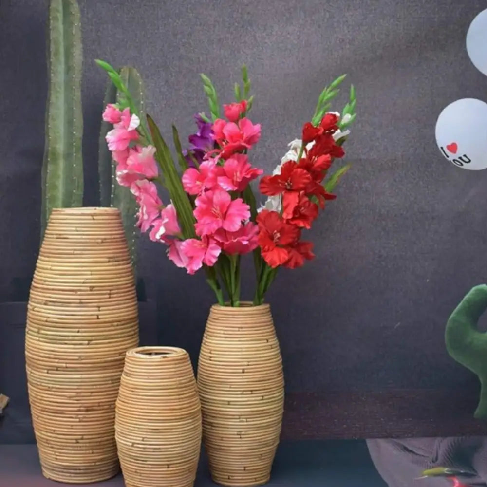 • Grand vase en bois à poser au sol, tressé en rotin naturel