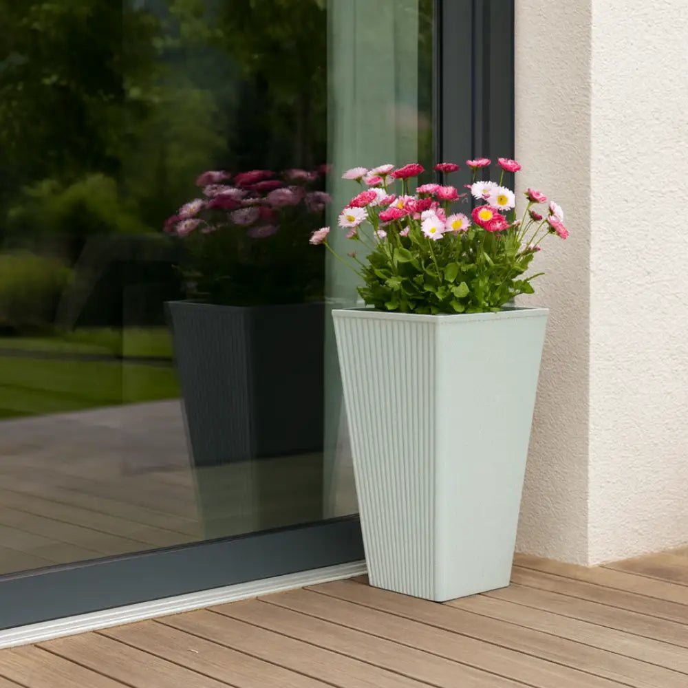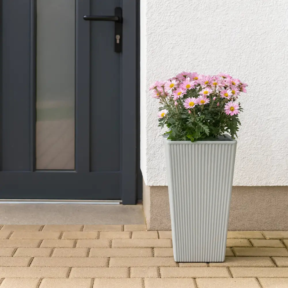 • Design épuré et élégant : Pot carré gris clair avec des rayures verticales