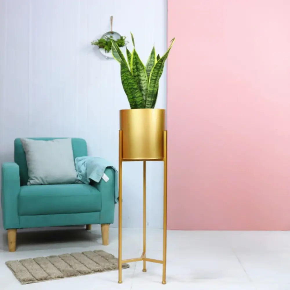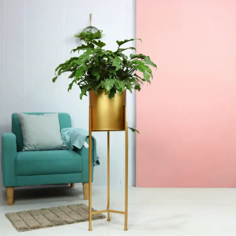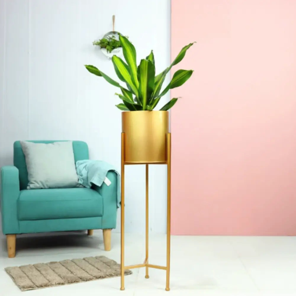 Pot de fleur doré sur pied — une touche d’élégance intemporelle qui transforme votre espace