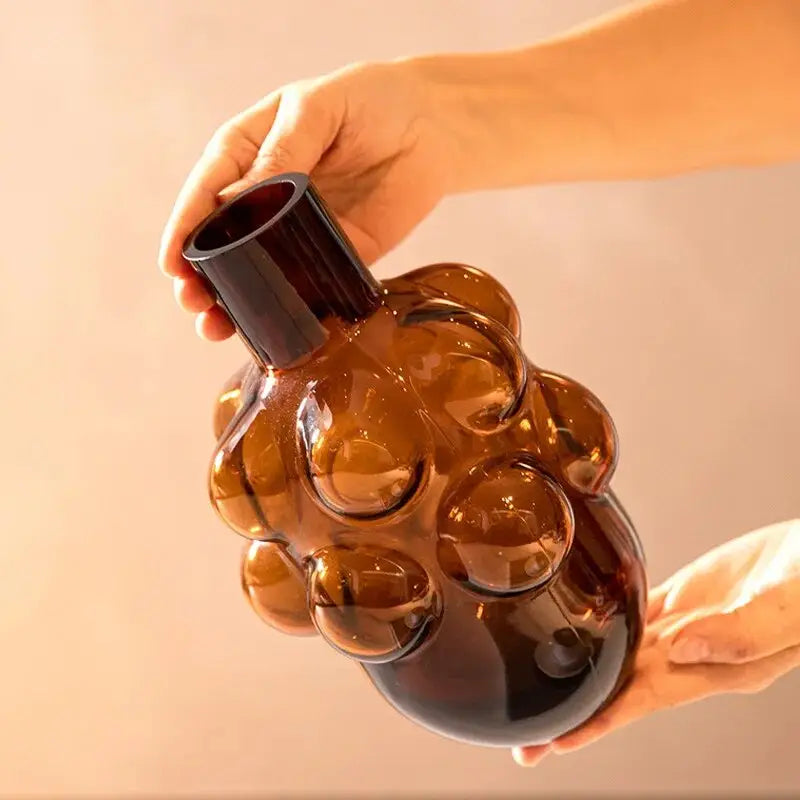 • Design : Vase en verre coloré avec une forme unique rappelant une grappe de raisin et des couleurs vives