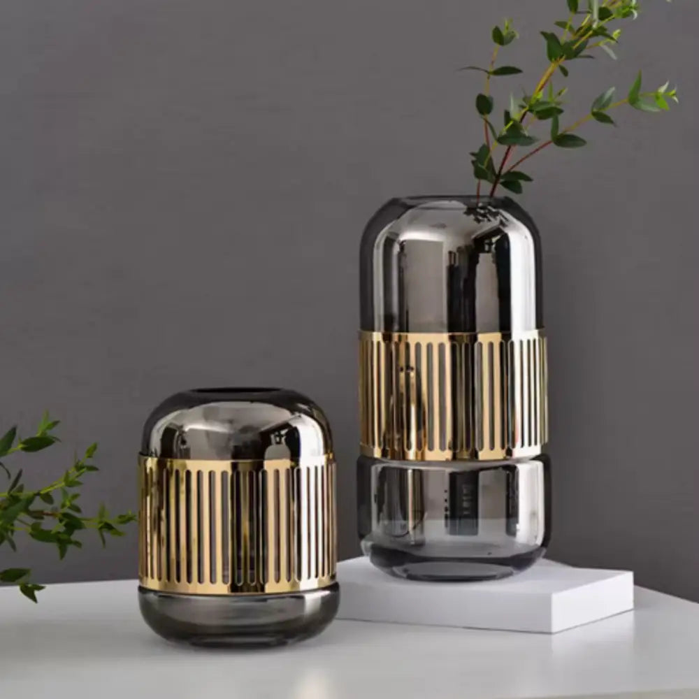 • Type de produit : Vase en verre transparent décoratif avec motif doré